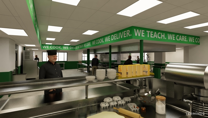 Our new home is a 43,000-square-foot facility located at 1380 West Marietta Street, adjacent to the Grove Park Neighborhood and Westside Park, making it centrally located to our service area. The new location is uniquely outfitted with an industrial kitchen and will allow us to double our warehouse space and increase our freezer/cooler capacity by 8,000 square feet. The new site also features a state-of-the-art teaching kitchen, for our critical nutrition support programs.